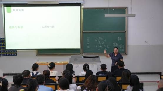 在此次公开课上,吴双老师以“学生来信,如何做一个四有好老师”为导语,引入课程内容,将案例融入课堂教学,通俗易懂地阐释了社会角色的定义以及角色失调的相关理论知识,为学生们带来了全面而系统的课程体验。除了专业知识的讲述外,课上还精心设置了学生作业的点评互动环节。以此复习巩固专业基础知识,使同学们能够深入理解和掌握传播学的相关知识要点。