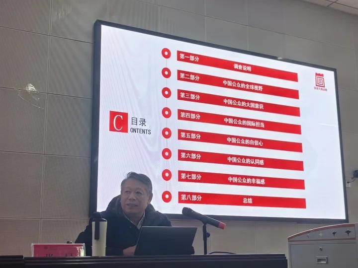 张昆教授分别从中国公众的全球视野、中国公众的大国意识、中国公众的国际担当、中国公众的自信心、中国公众的认同感以及中国公众的幸福感这六个视角,用详实的调查数据,对中国公众的世界观进行了主题解读,同时也对全球政治形势做了梳理。张昆教授表示2025年是一个关键节点,中国公众对于中国实力、形象以及对未来的发展具有十分充足的信心。