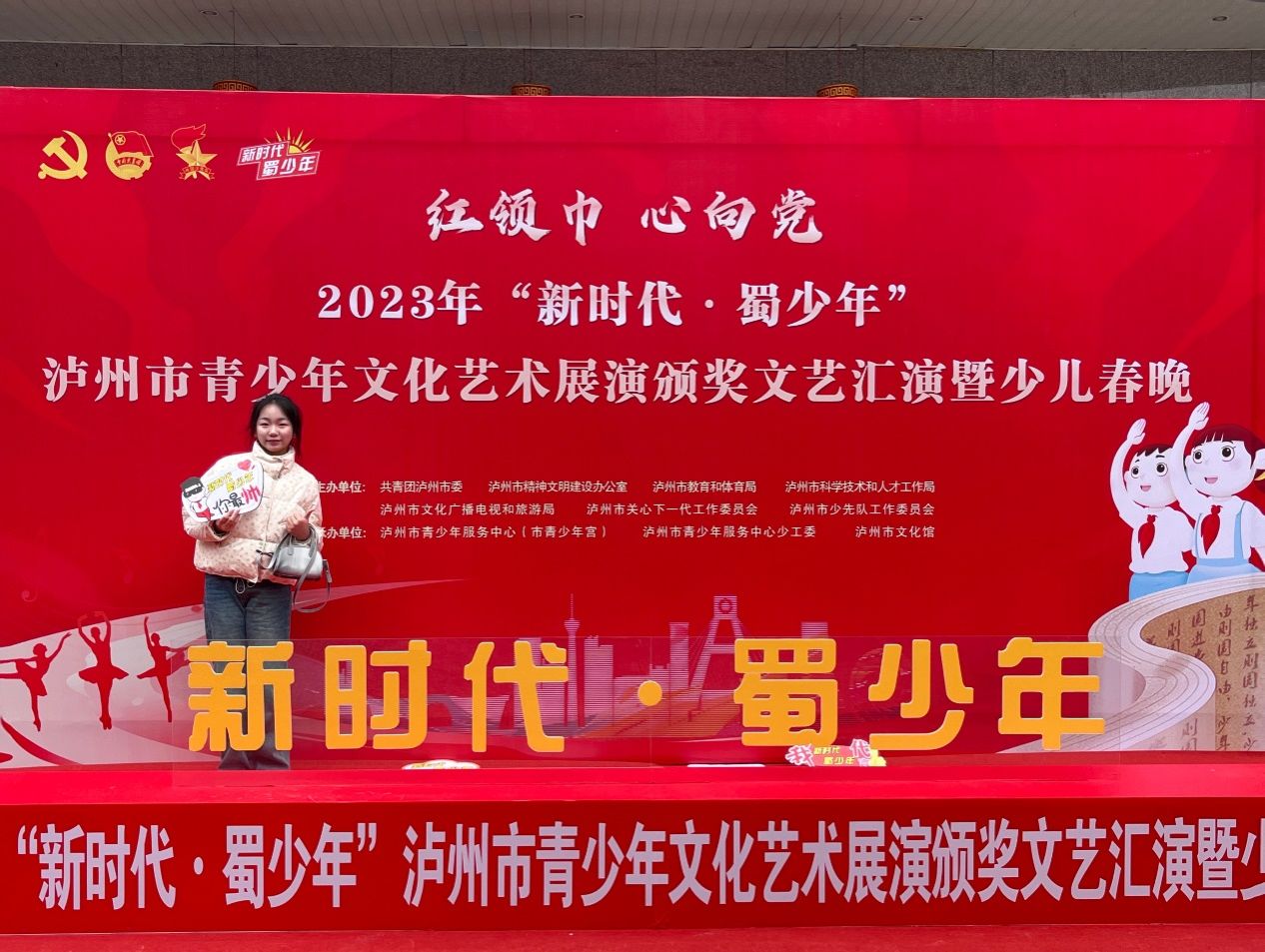 在2024泸州市青少年春节联欢晚会彩排筹备期间,周思媛同学以其专业的广播电视学知识和实践经验,在泸州市广播电视台担任催台和后勤工作,为晚会的顺利进行提供了有力保障。