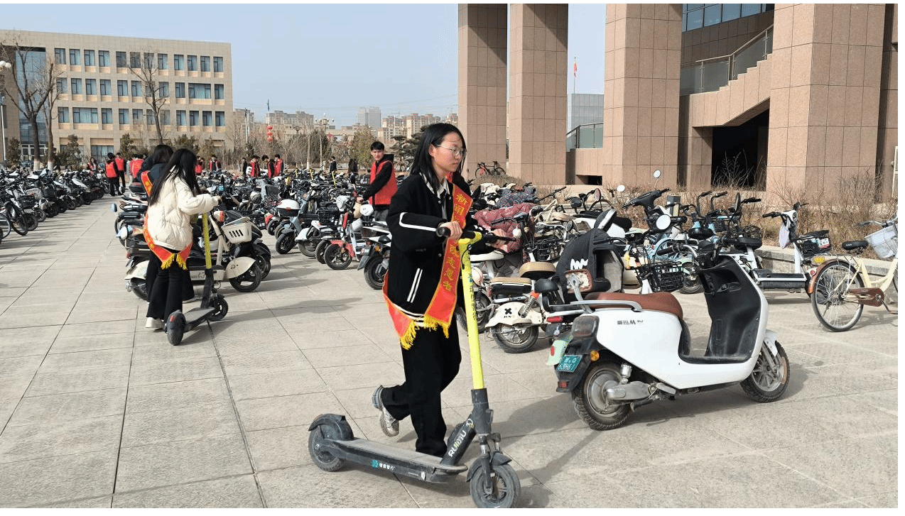 由于图书馆周边共享单车停放杂乱,影响校园美观,且给师生出行带来不便,志愿者们将随意停放的共享单车、电动自行车一一调整方向,排列整齐,并按照规定区域有序停放。经过大家的共同努力,原本杂乱无章的共享单车摆放得整整齐齐,图书馆周边环境焕然一新。