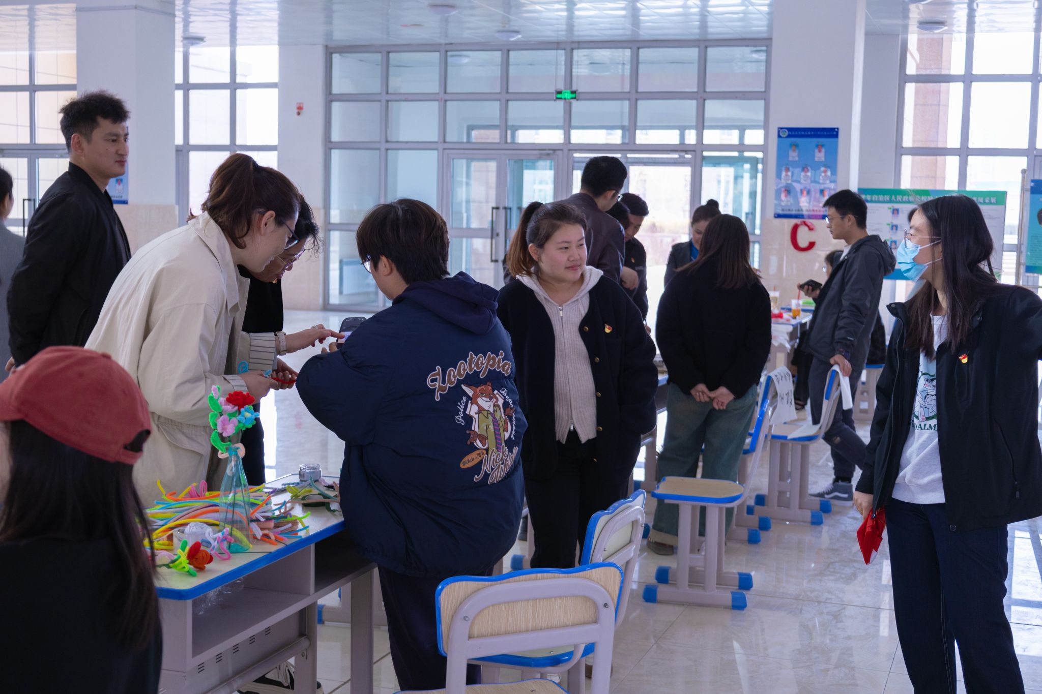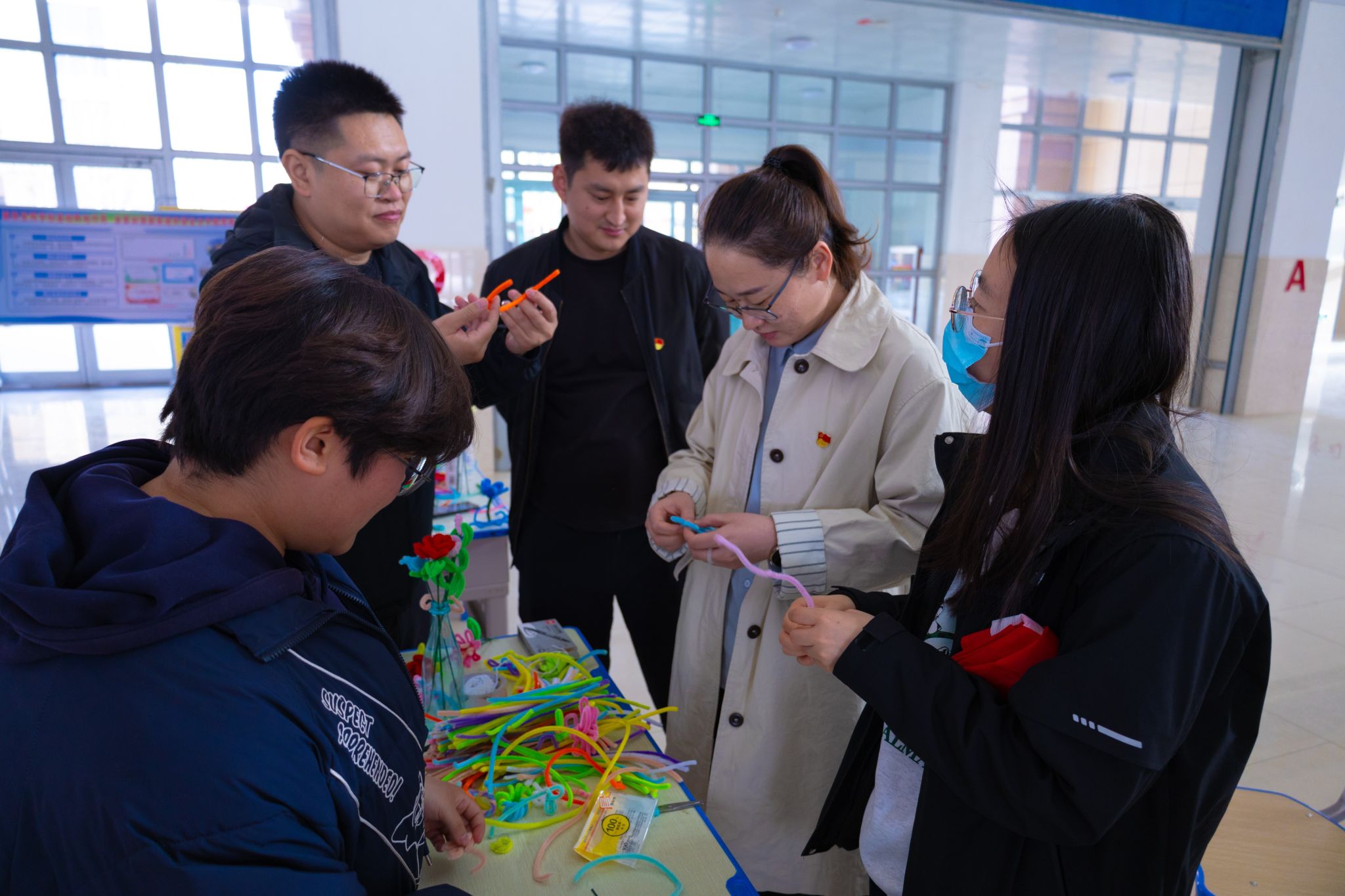 活动现场,丰富的扭扭棒材料吸引了同学们纷纷动手创作。同学们充分发挥创意,将手中的扭扭棒弯成各种形状,如娇艳的花朵、灵动的动物,同学们拿出手机向家人分享心中的喜悦。