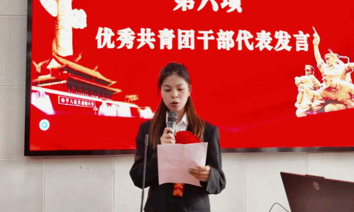 颁奖结束后,“五四红旗团支部”代表,广播电视学2307班团支书兼班长白梦淼进行发言。她介绍了团支部在思想建设、组织建设、社会实践等方面的经验和成果,展现了团支部的凝聚力和战斗力。“优秀共青团干部”广播电视学2308班团支书兼班长魏敏慧进行代表发言。她分享了自己在班级建设与团支部工作中的点滴经验。同时,她也表达了对老师悉心指导的感激,对同学们信任支持的感谢,并号召全体团员青年以青春之我、奋斗之我,在新征程上书写属于自己的华彩篇章,现场不时响起热烈的掌声。