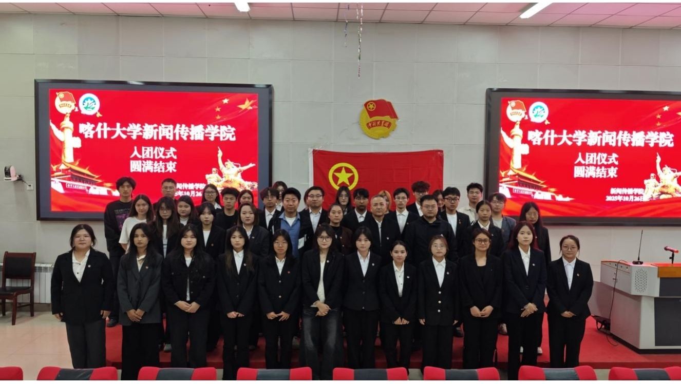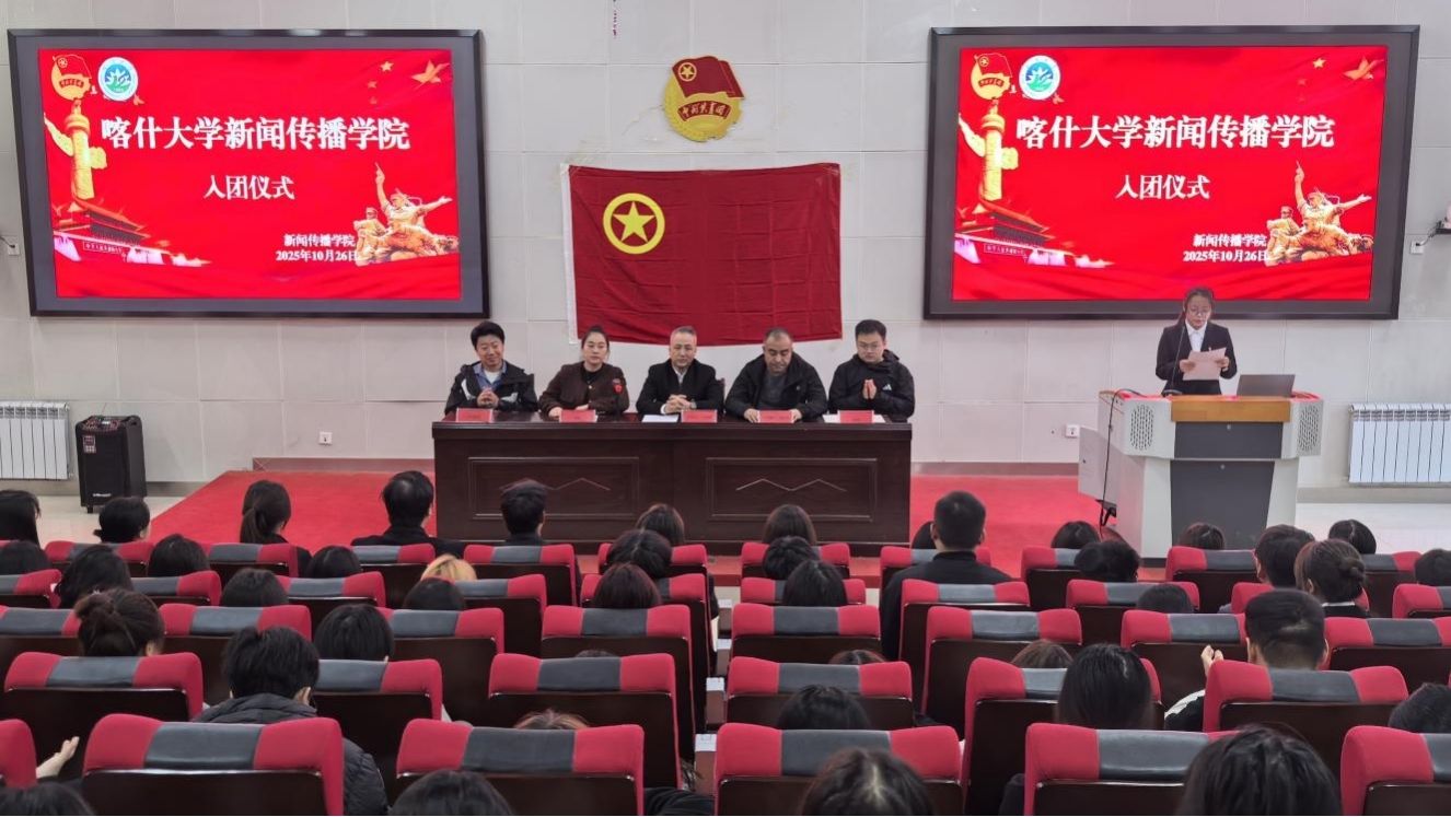 2025年10月26日19时,新闻传播学院楼D001会议室气氛庄重而热烈,一场承载着青春理想与责任担当的新团员入团仪式在此正式拉开帷幕。新闻传播学院党总支副书记吾麦尔江·艾麦提同志、新闻传播学院团委副书记罗霞同志、新闻传播学院学工办主任吐尔逊江·依萨克同志、新闻传播学院学工办副主任孙帅同志、援疆辅导员教师刘宏健同志受邀出席,与36名身着正装、眼神饱含期待的新团员共同见证这一重要时刻,仪式全程严格遵循共青团入团规范流程,每一个环节都传递着对团组织的敬畏与尊崇。