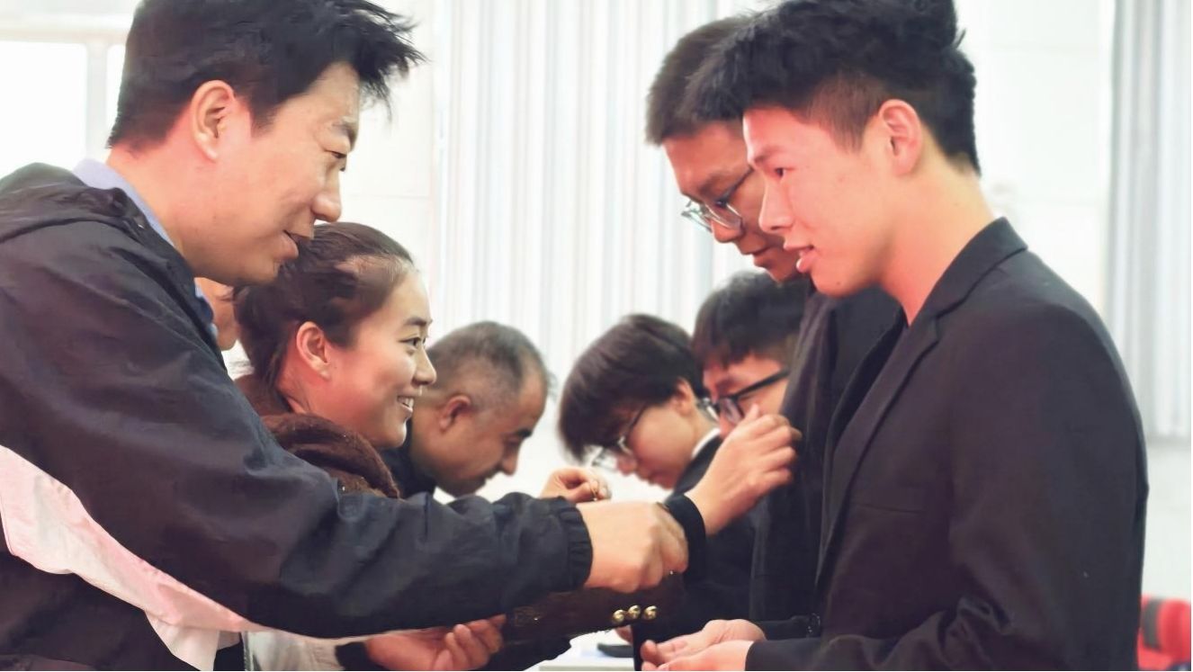 随后,党总支副书记吾麦尔江·艾麦提、学院团委副书记罗霞、学工办主任吐尔逊江·依萨克主任、学工办副主任孙帅、援疆辅导员教师刘宏健,为新团员佩戴团徽,当团徽触碰到衣襟的瞬间,不少新团员下意识地挺直了腰背,眼中闪烁着激动的光芒——这枚小小的徽章,不仅是身份的象征,更是一份沉甸甸的责任。