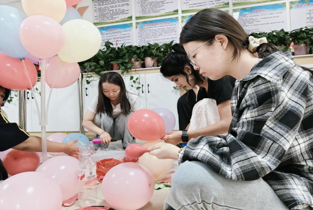 活动当天,大家热情高涨,早早集结,带着气球、彩带、灯笼、蝴蝶挂饰等装饰材料,迅速投入7号新生宿舍楼的装饰工作中,大家充分发挥创意:你挂灯笼,我贴横幅;你吹气球,我绑“气球树”;你拧蝴蝶,我挂拉花。一只只蝴蝶在墙上飞舞,一棵棵气球簇立在宿舍楼前,一个个灯笼在树上招手,迎新的气息充满每个角落。