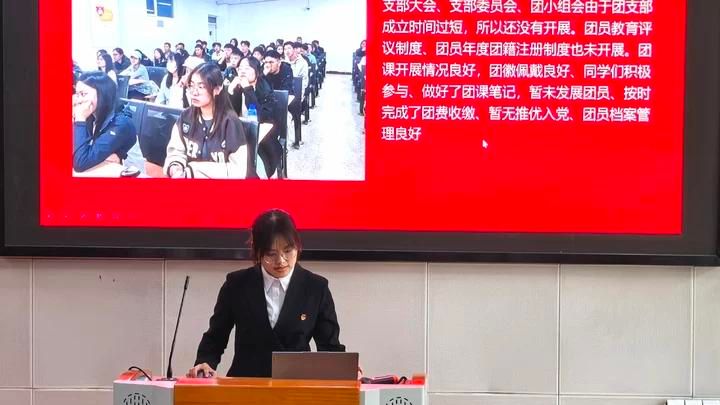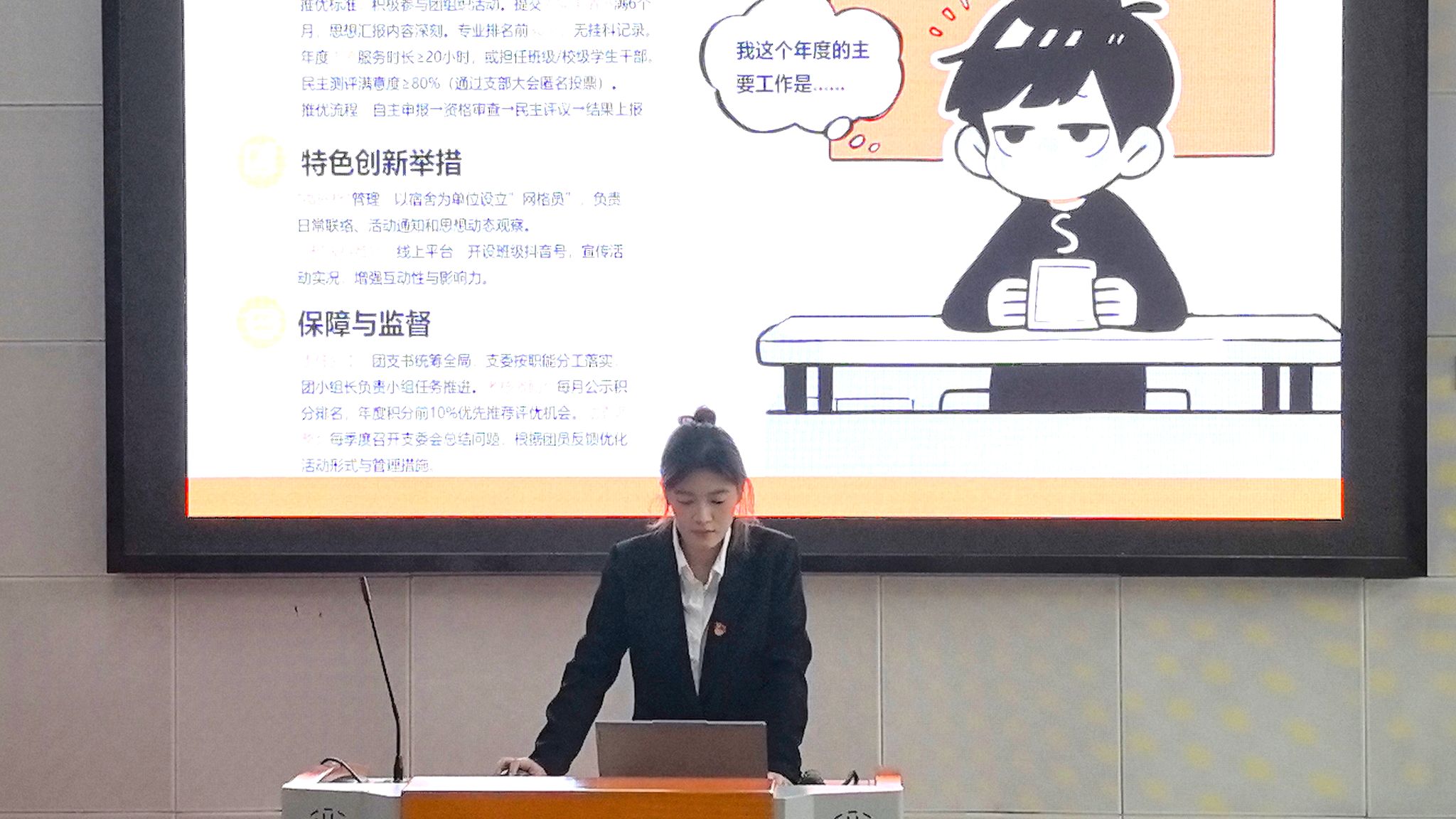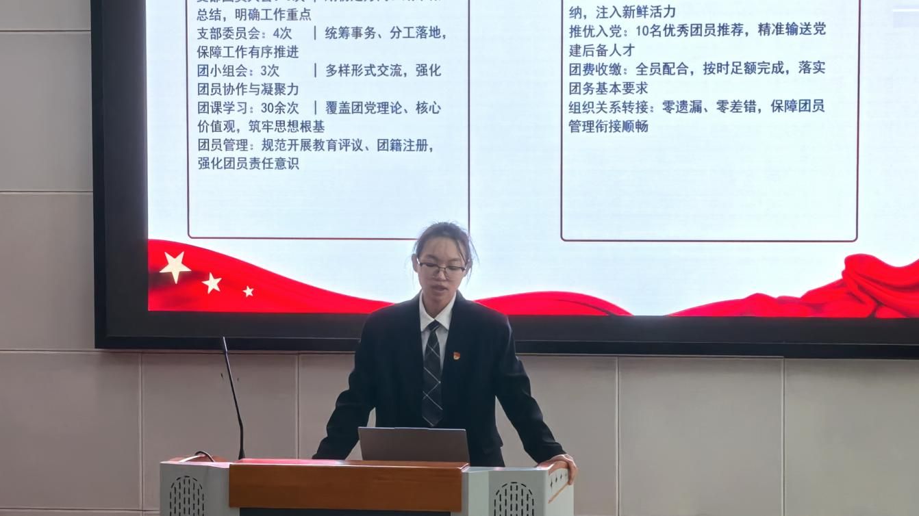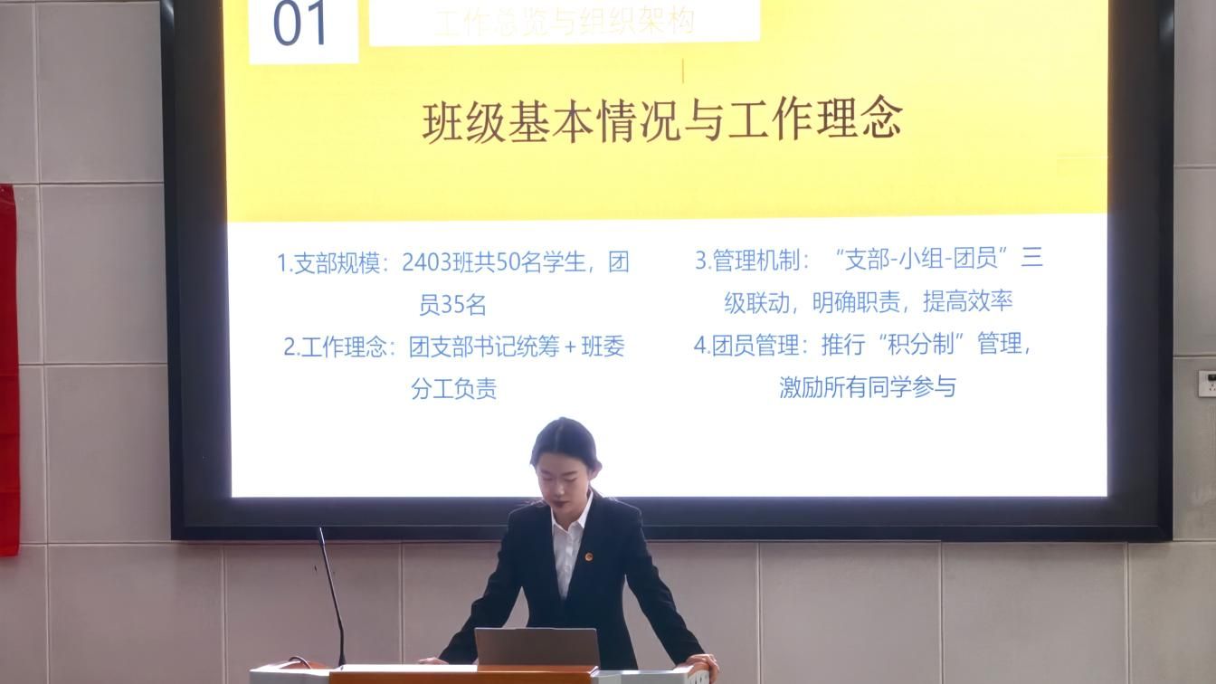 会上,各团支部负责人依次登台述职。述职过程中,大家紧扣思想引领、组织建设、团日活动、志愿服务、学风建设、特色工作六大核心板块,通过详实的数据、生动的案例和清晰的图文,全面复盘年度工作开展情况。在思想引领方面,各支部聚焦红色主题教育与民族团结进步教育,开展主题团日、专题学习会等活动,推动党的创新理论入脑入心;在组织建设方面,严格落实“三会两制一课”制度,规范团员发展流程,强化支部班子建设,筑牢基层组织根基;在实践活动方面,各支部在总结成绩的同时,也直面工作短板,深入剖析了活动形式创新不足、团员参与度不均衡、品牌活动影响力有待提升等问题,并结合支部实际,从丰富活动载体、强化精准服务、打造特色品牌等方面,明确了下阶段的工作思路与努力方向。与会领导认真听取各支部述职报告,逐一对述职内容进行评分,最终,2401班得分93.3分,2403班得分91.7分,2306,2307班班得分91分,其余各班也取得了良好的成绩。