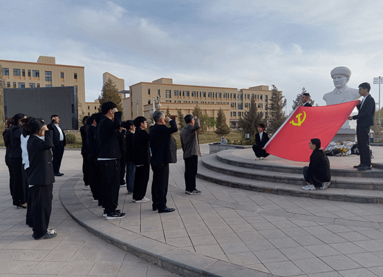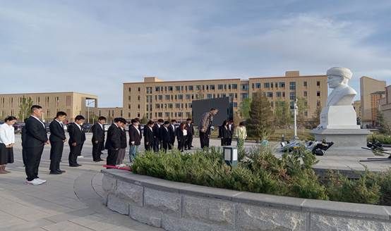 4月10日上午,喀什大学新闻传播学院全体师生党员们在我校帕米尔雄鹰广场,开展“缅怀时代英雄,赓续红色血脉”主题的党日活动。活动现场,党员同志们整齐列队,怀着无比崇敬的心情缅怀“时代楷模”“自治区优秀共产党员”拉齐尼·巴依卡同志。