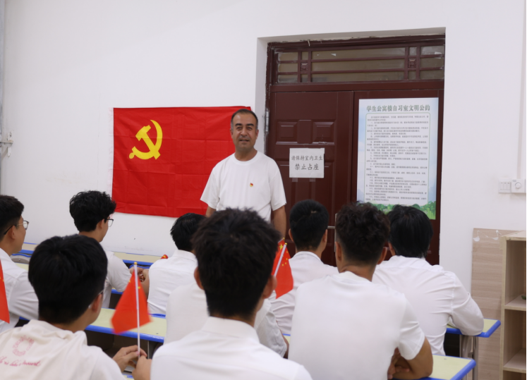 为庆祝中国共产党成立104周年,传承红色基因、筑牢信仰之基,新闻传播学院学生党支部于6月27日,在新泉校区十号宿舍楼一站式服务中心、八号宿舍楼小花园及党员活动室103室联动开展了"我与党旗合个影"主题教育活动。新闻传播学院团委副书记罗霞、学院学工办主任吐尔逊江·依萨克与学院专职组织员谢富铖牵头组织,学生党员以庄重仪式感参与此次沉浸式党性教育实践。