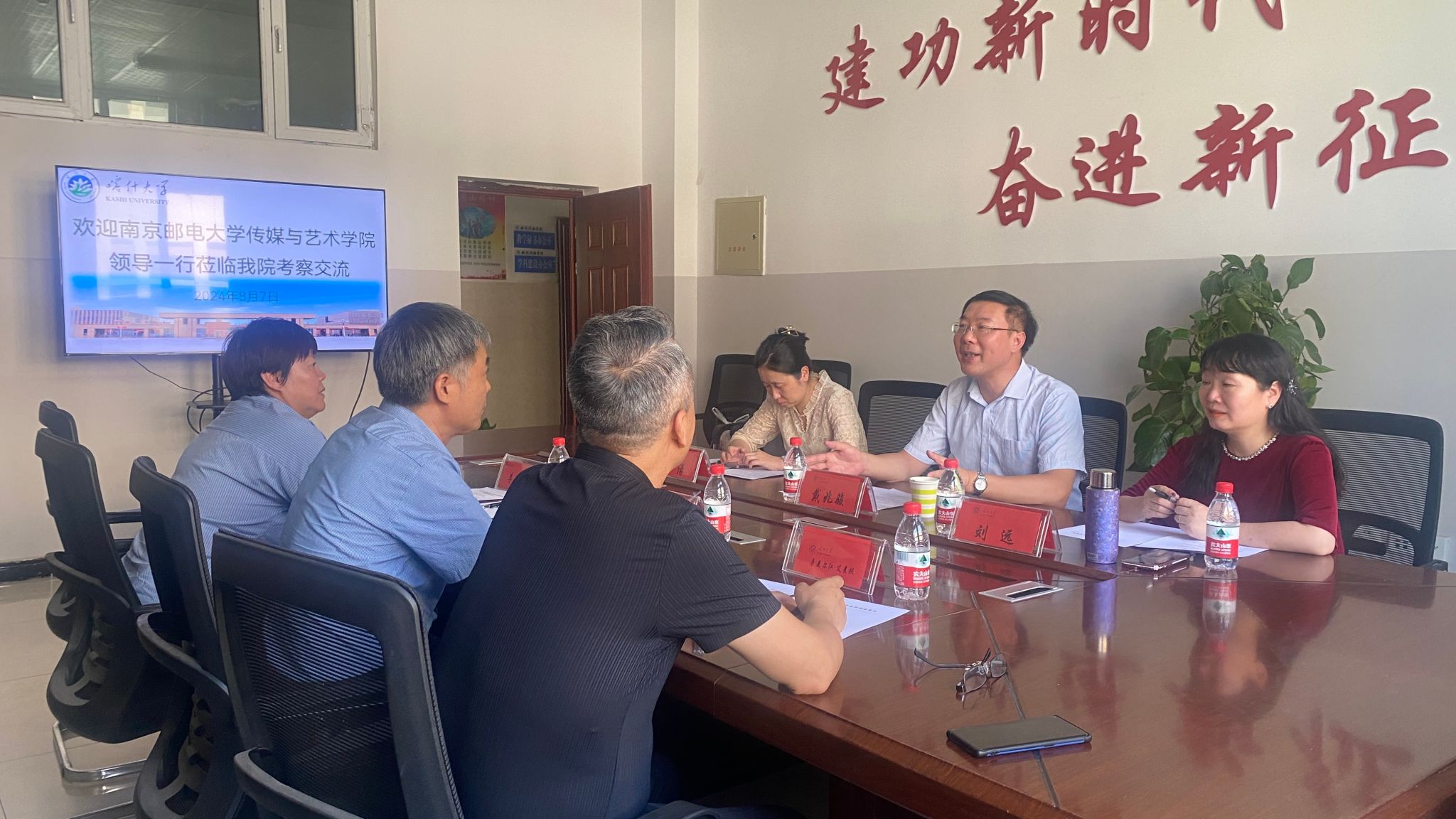 8月7日上午,南京邮电大学传媒与艺术学院党委书记戴兆骏、党委副书记、院长袁潇、党委副书记、副院长刘远一行赴喀什大学新闻传播学院调研交流并签署联合培养本科生协议。我院党总支书记李少平、院长李小琴、副书记吾麦尔江·艾麦提参加会议,并座谈。