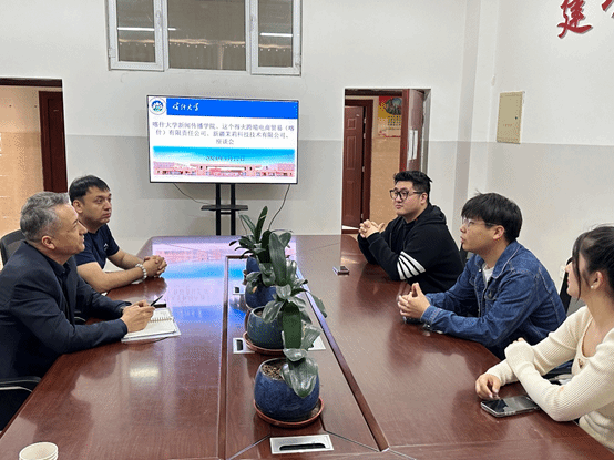 为深入落实“访企拓岗”工作要求,全力开拓毕业生就业岗位,加强“访企拓岗”专项工作的实效性,2024年4月12日上午,新闻传播学院党总支书记李少平、党总支副书记吾麦江·艾麦提、团委书记塔依尔·吾拉音与新疆茉莉科技技术有限公司人事总监郭羽均、“这个得火”跨境电商贸易(喀什)有限责任公司总负责人陈婷,在新闻传播学院215会议室座谈。