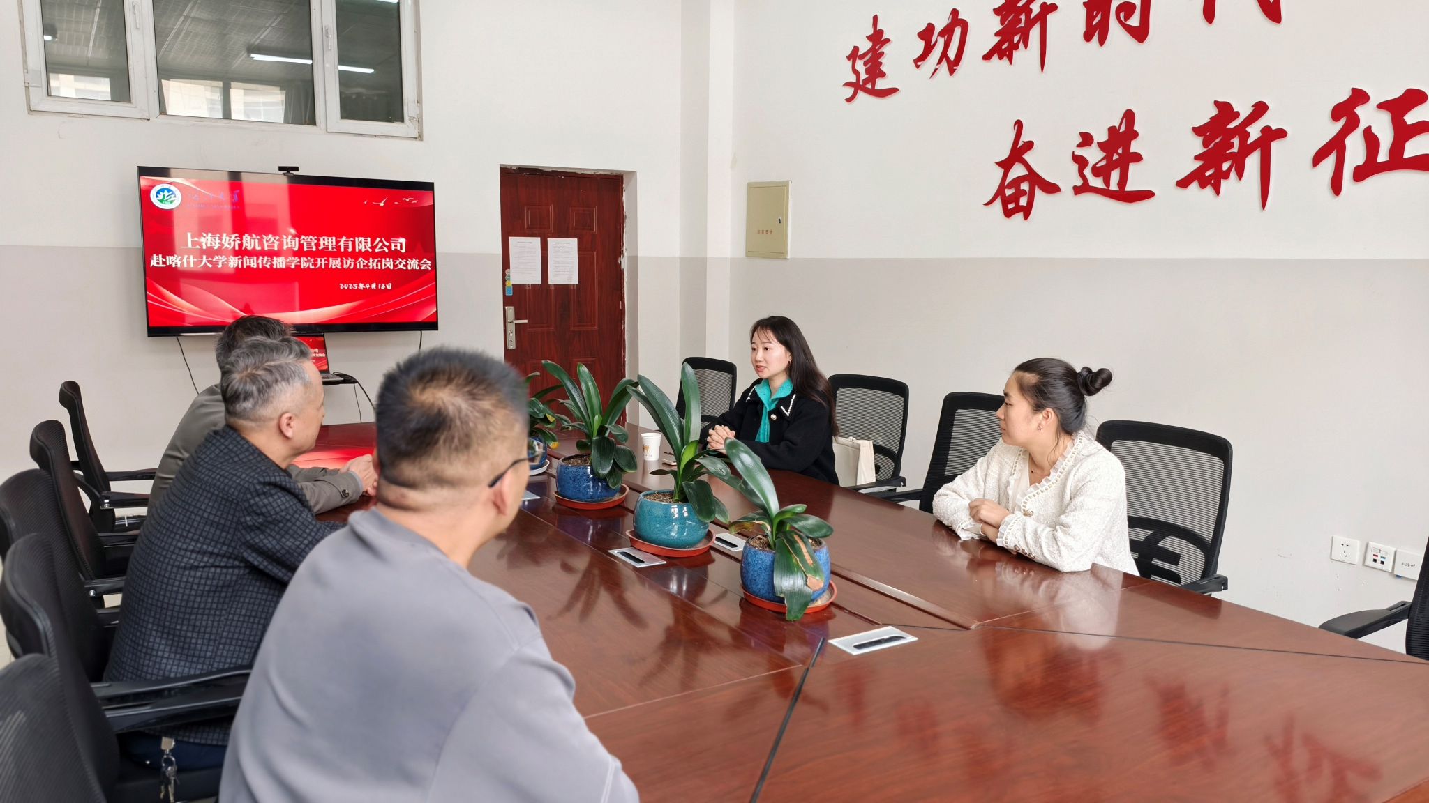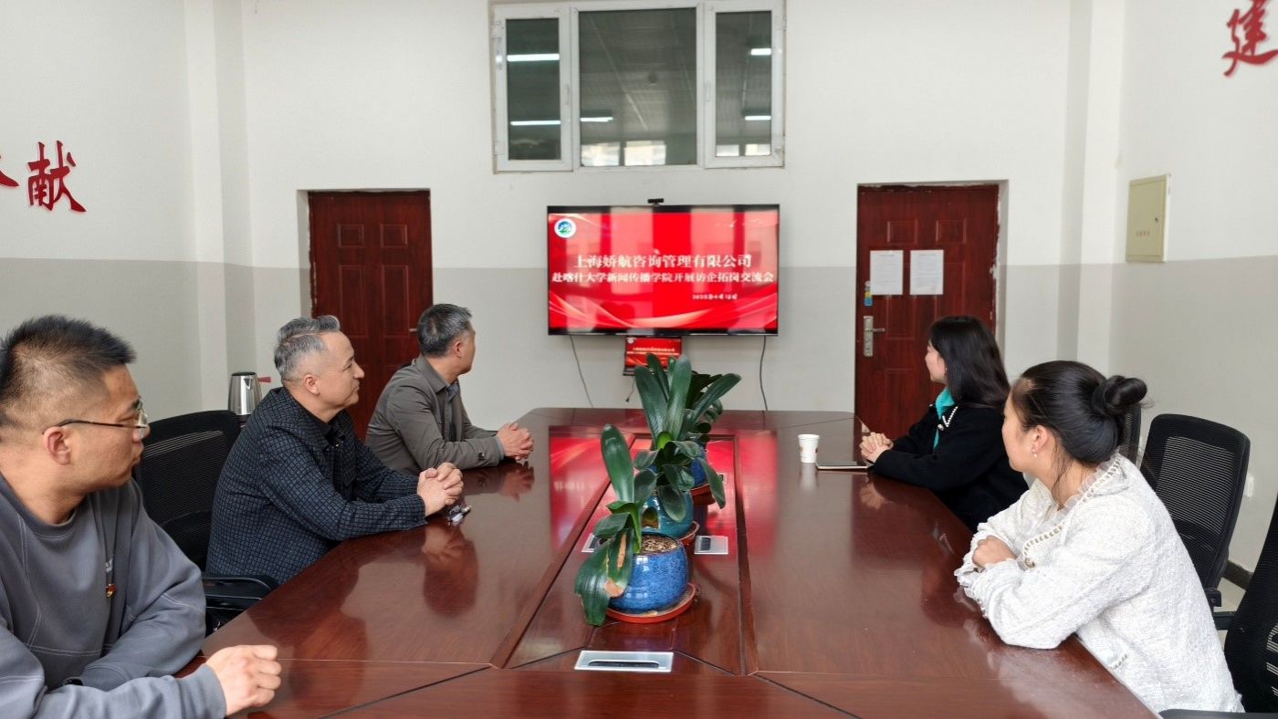 在交流过程中,新闻传播学院领导详细了解了上海娇航咨询管理有限公司的业务范畴以及行业发展趋势。了解到该企业正处于快速发展阶段,对新闻传播领域的专业人才需求日益增长,希望与我院建立长期稳定的合作关系。该公司负责人还深入了解我院新闻采编、短视频创作等课程的教学成果,并高度评价学院"理论+实操"的培养模式,特别关注学生在新媒体运营、品牌策划等领域的实训成果。