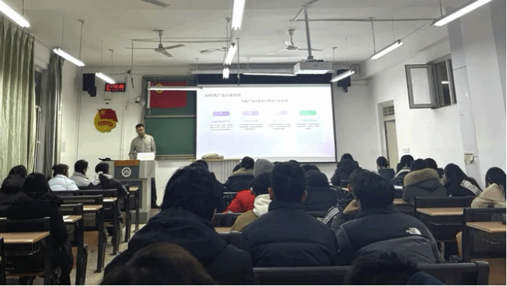 谢老师首先梳理了AI时代广告行业的现状与趋势,指出当前AI技术在广告领域应用广泛,行业竞争加剧且呈现数据驱动决策、广告形式多样化的特征,未来行业将朝着智能化投放、创意自动化、跨平台整合与实时优化方向发展。随后,他明确了广告学专业学生须具备的核心能力、专业能力、时间管理与问题解决能力。