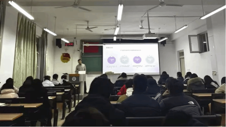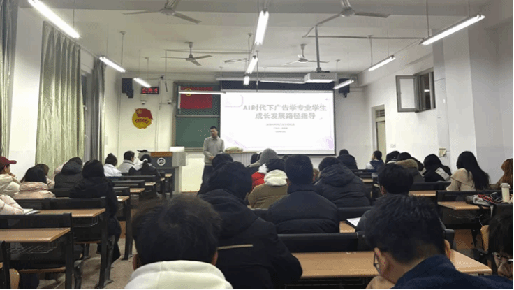 为帮助我院广告学专业学子明晰职业发展路径,破解大学学习和职业选择困惑,12月21日,新闻传播学院谢富铖老师于高台校区新文科楼423室开展了以“AI时代下广告学专业学生成长发展路径指导”为主题的讲座,讲座聚焦AI技术对广告行业的变革影响,拆解广告学专业学生的核心能力要求与职业发展路径,为有专业发展规划需求的学子提供全方位指导,助力明晰成长方向、科学规划职业路径。